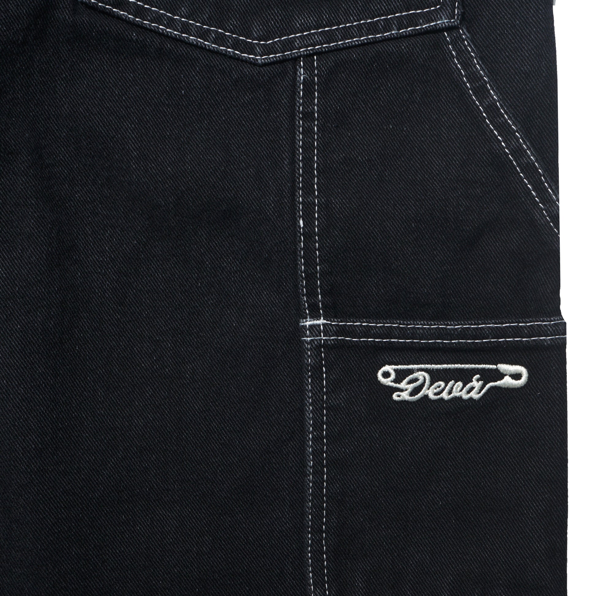 Embroidered Devá safety pin branding on right pocket