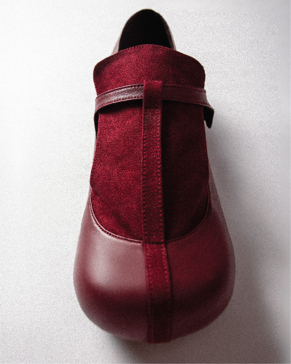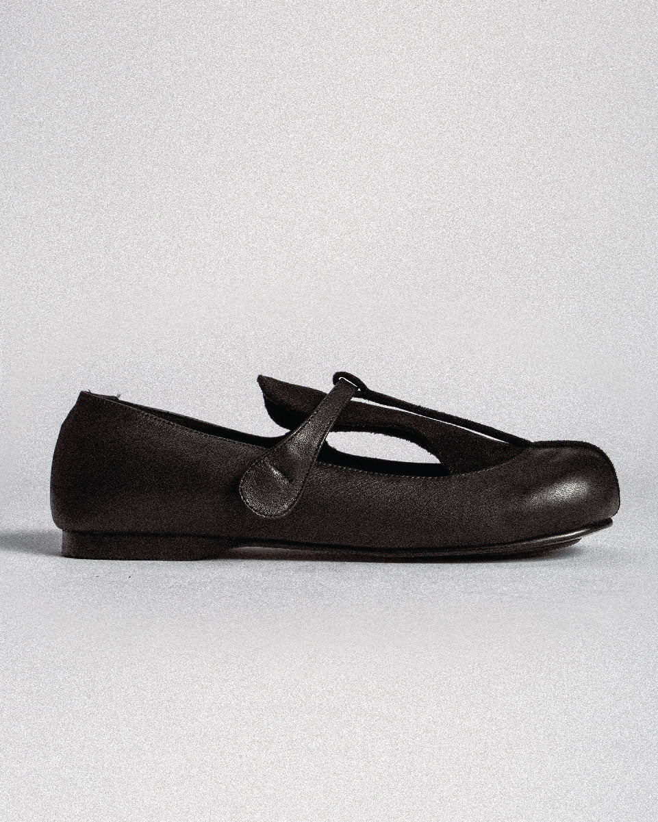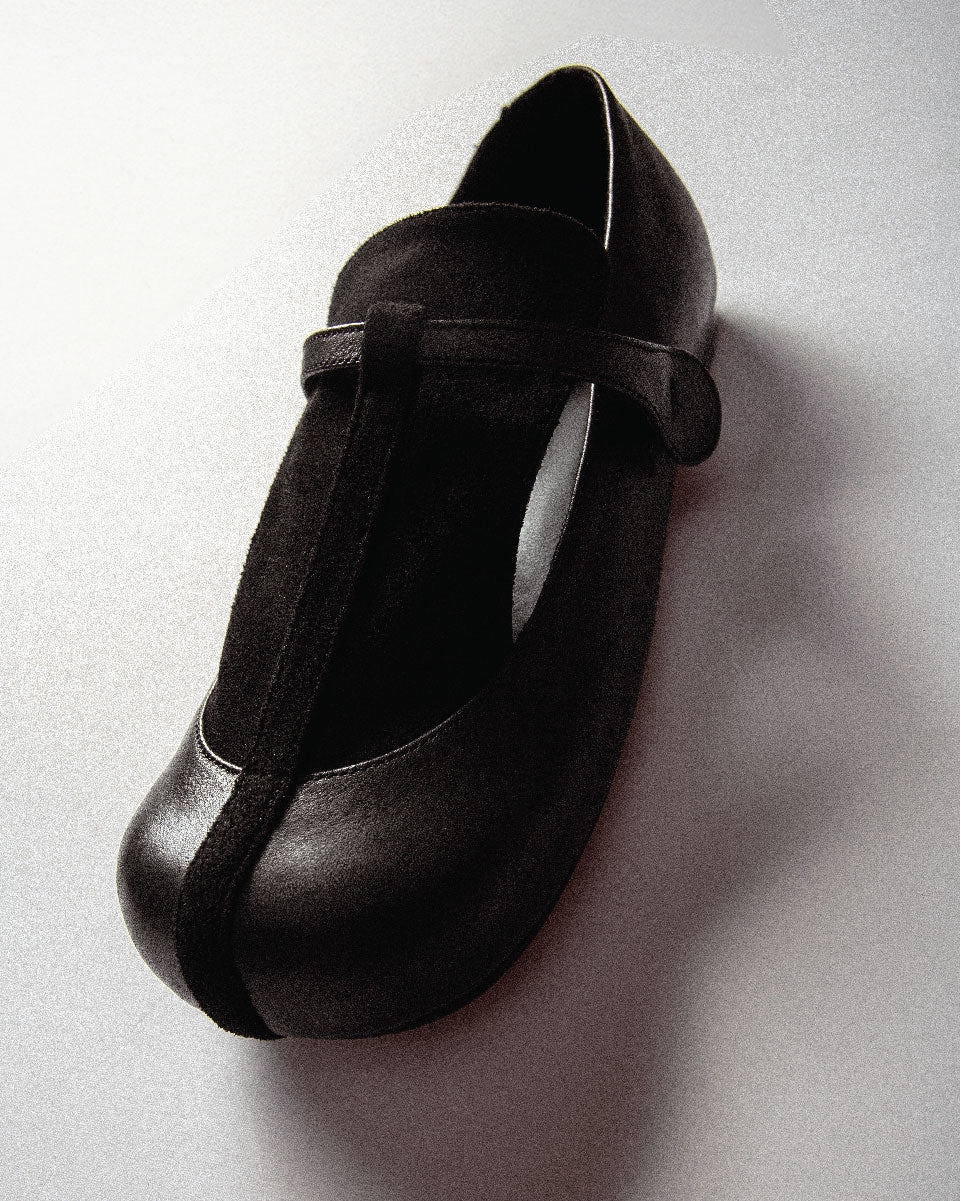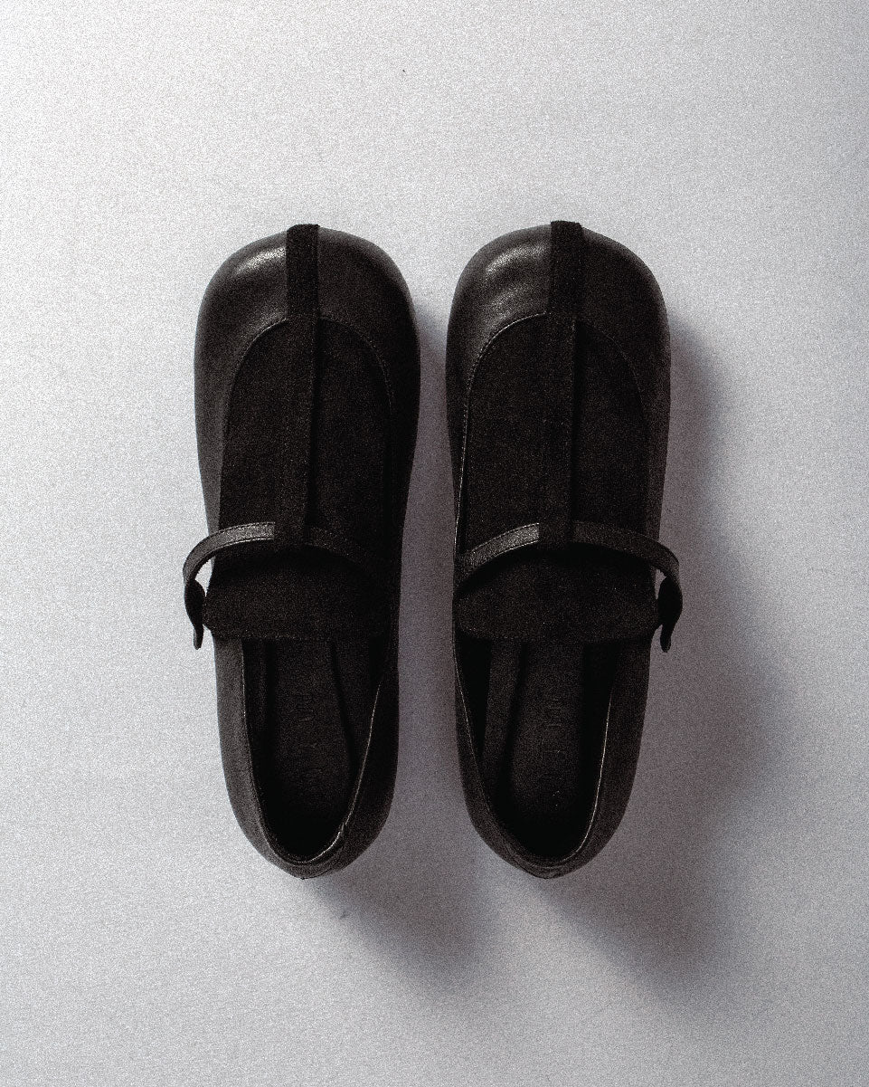 A rounded toe flat shoe crafted in genuine leather featuring a t-bar mary jane upper with a suede tongue.